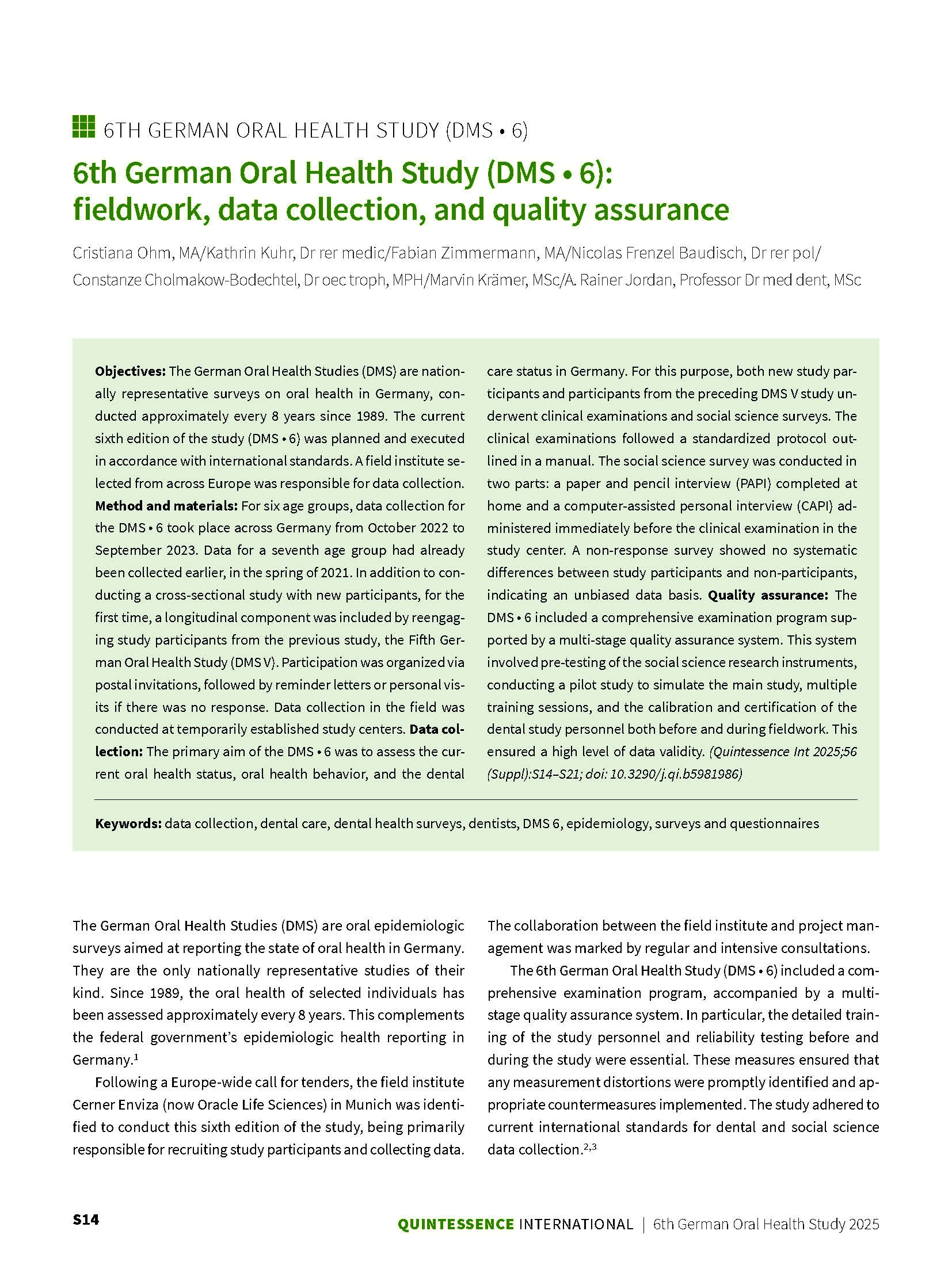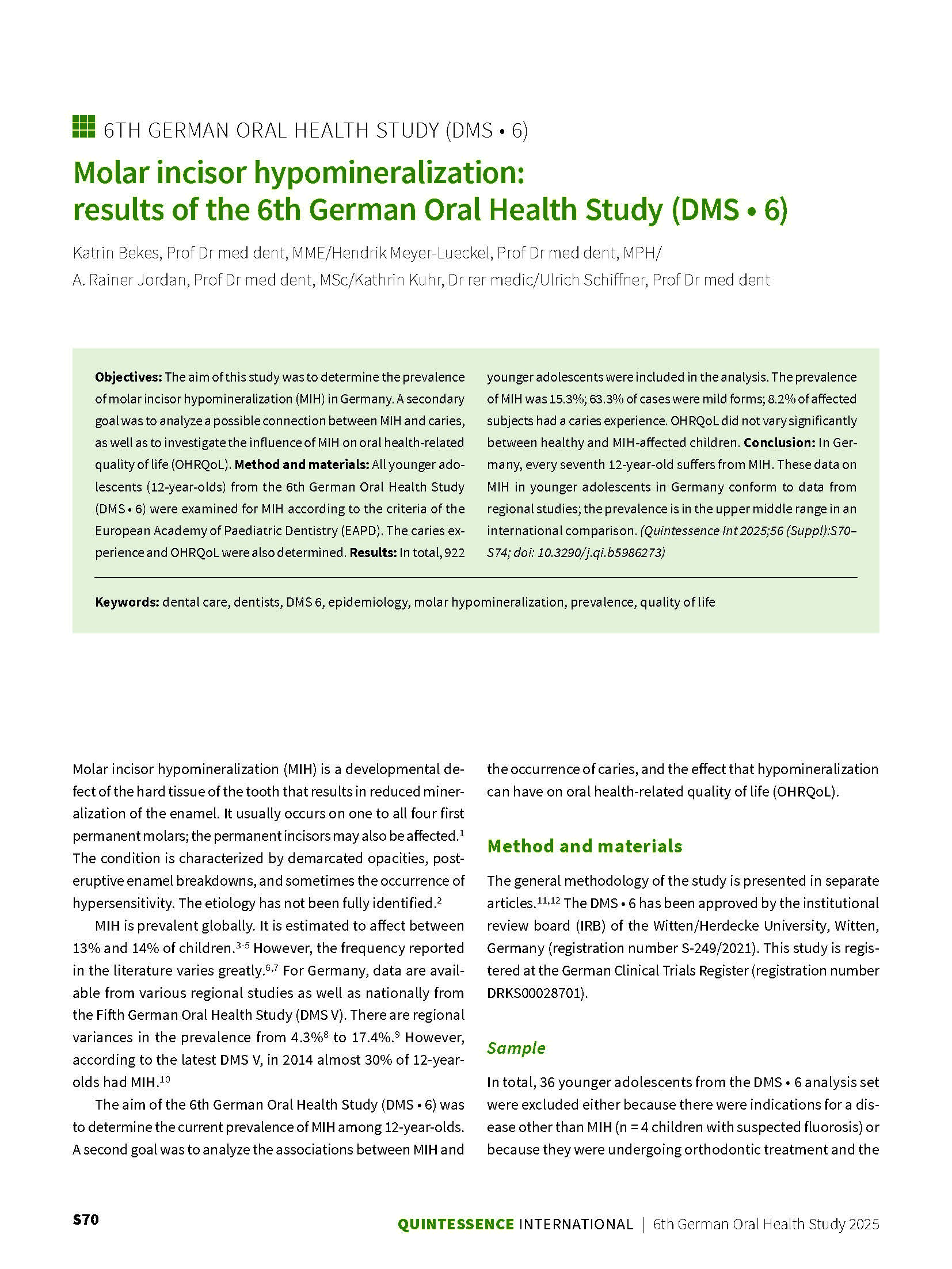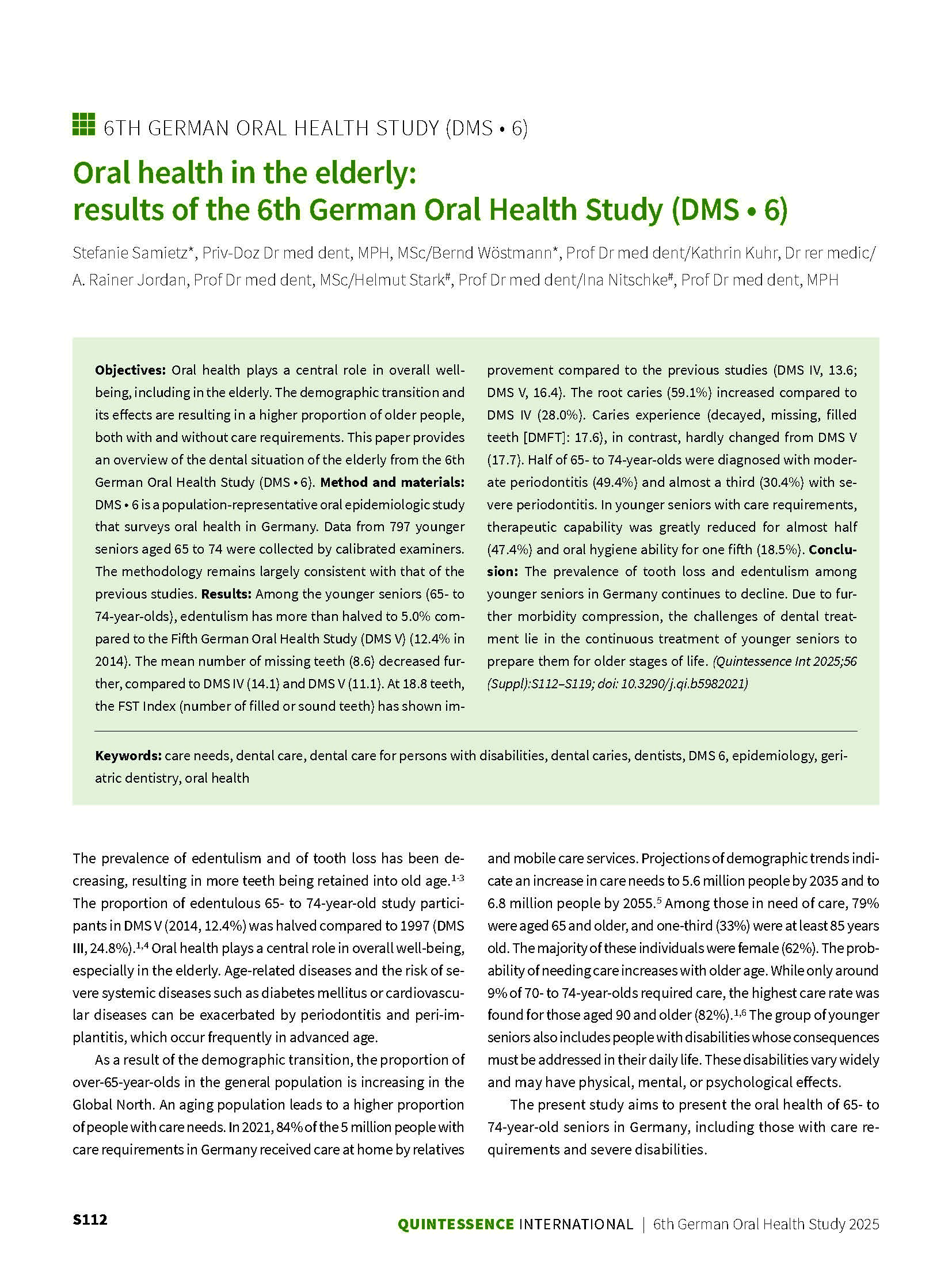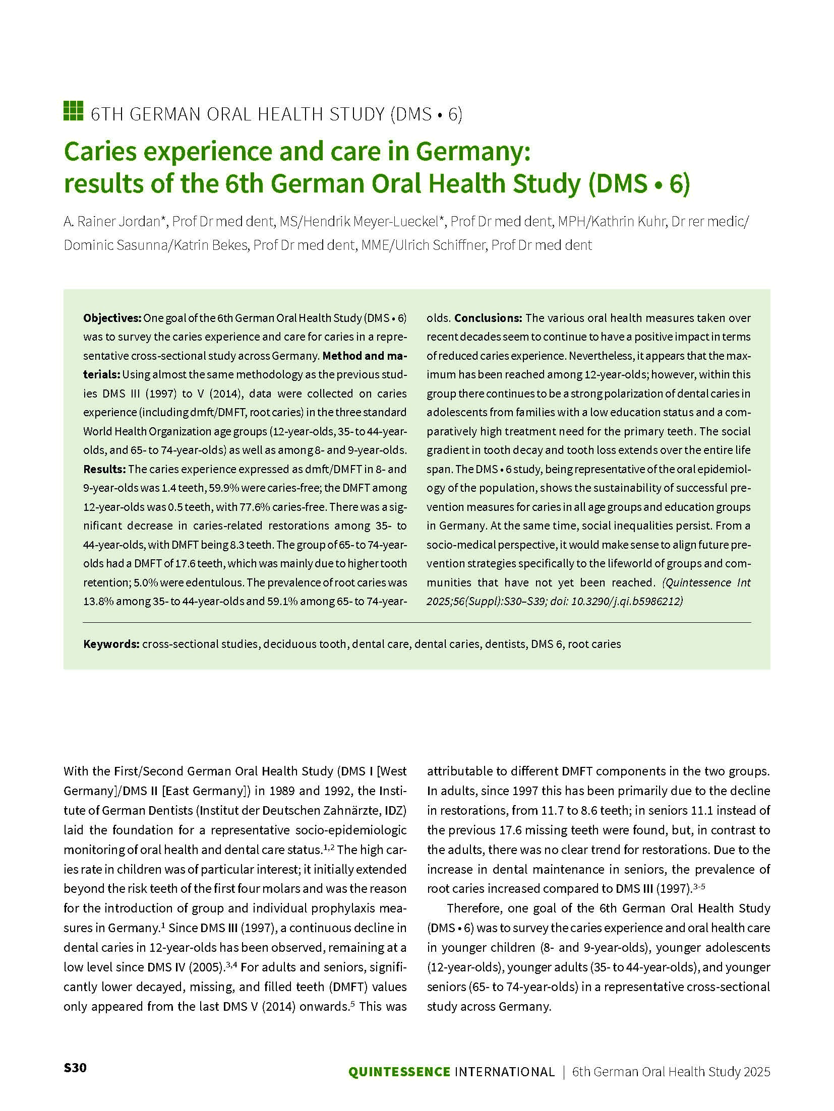 - Überblick über die wichtigsten Ergebnisse der 6. Deutschen Mundgesundheitsstudie (DMS • 6)