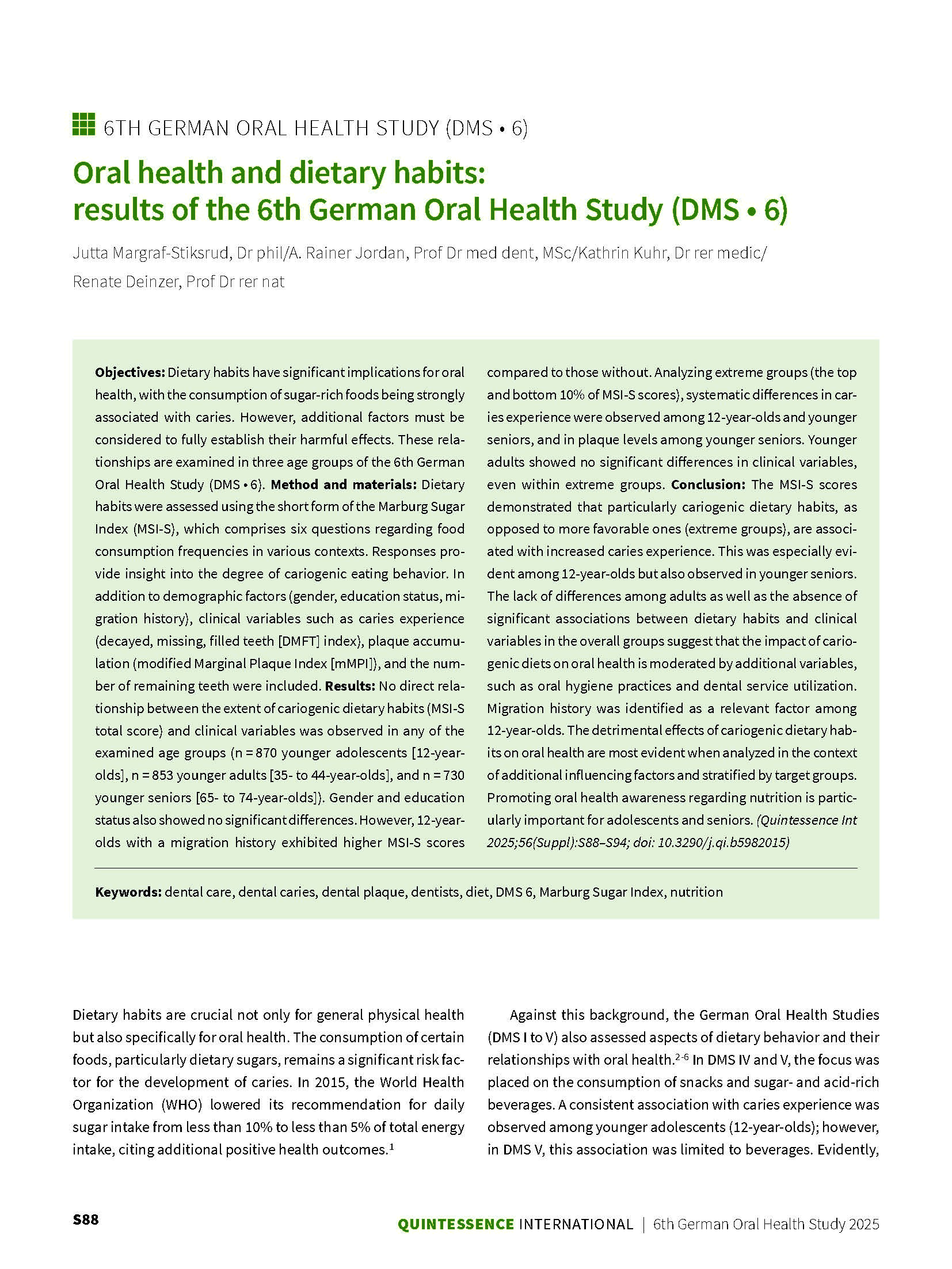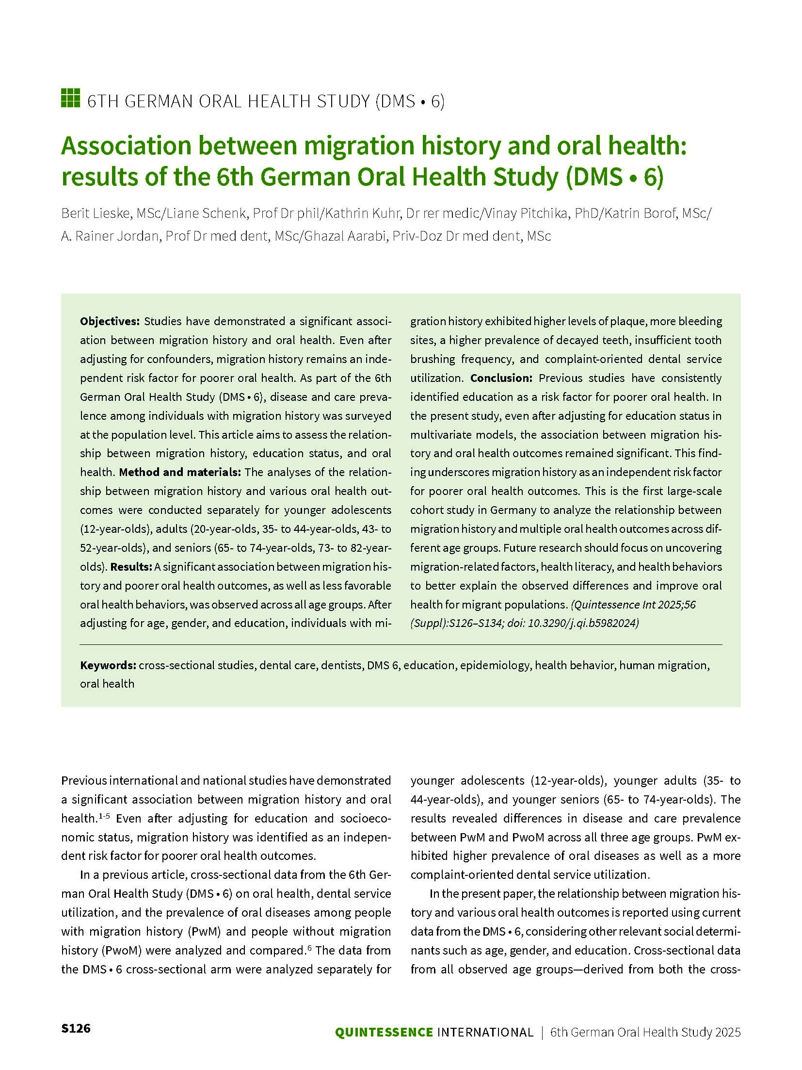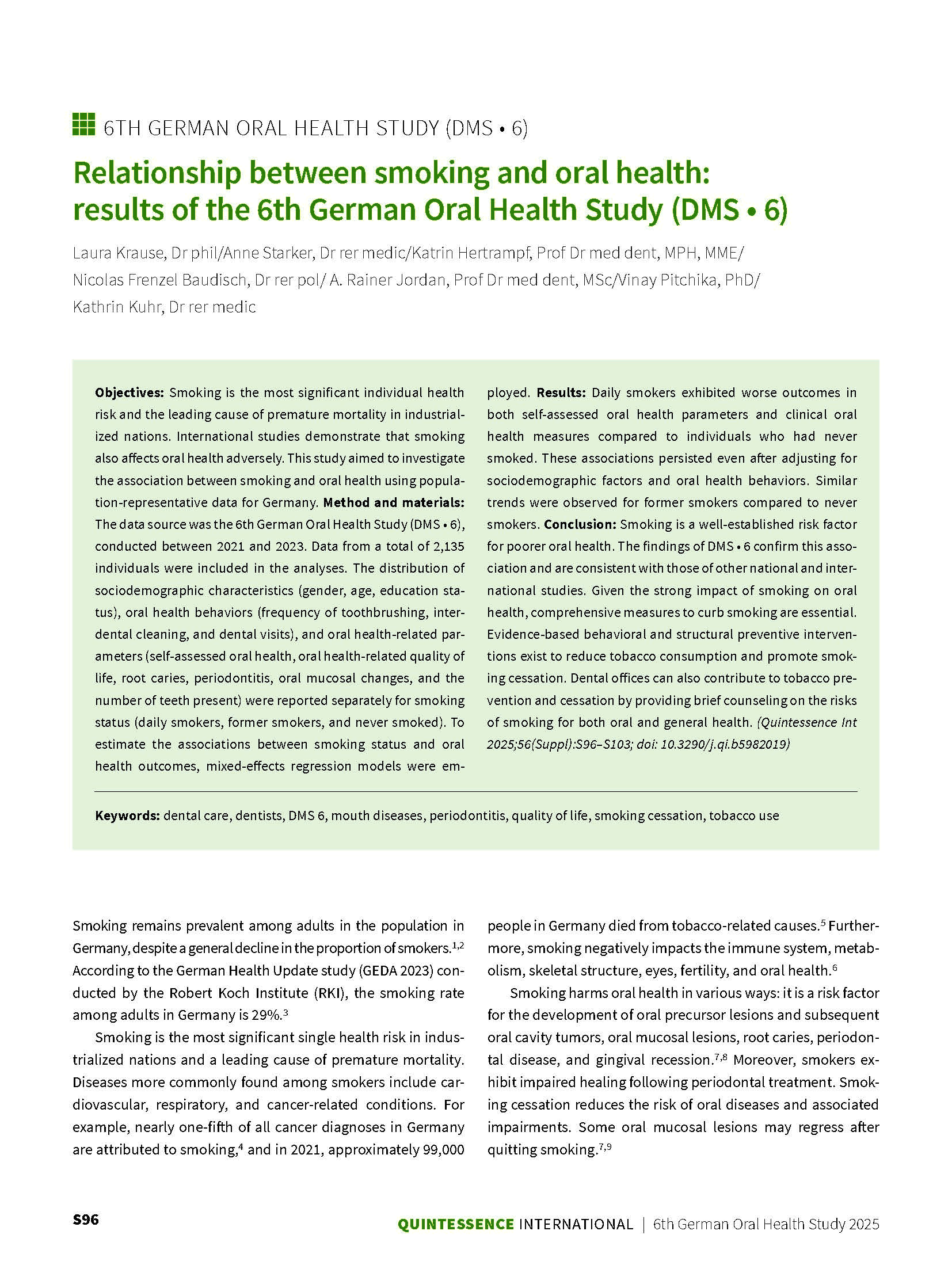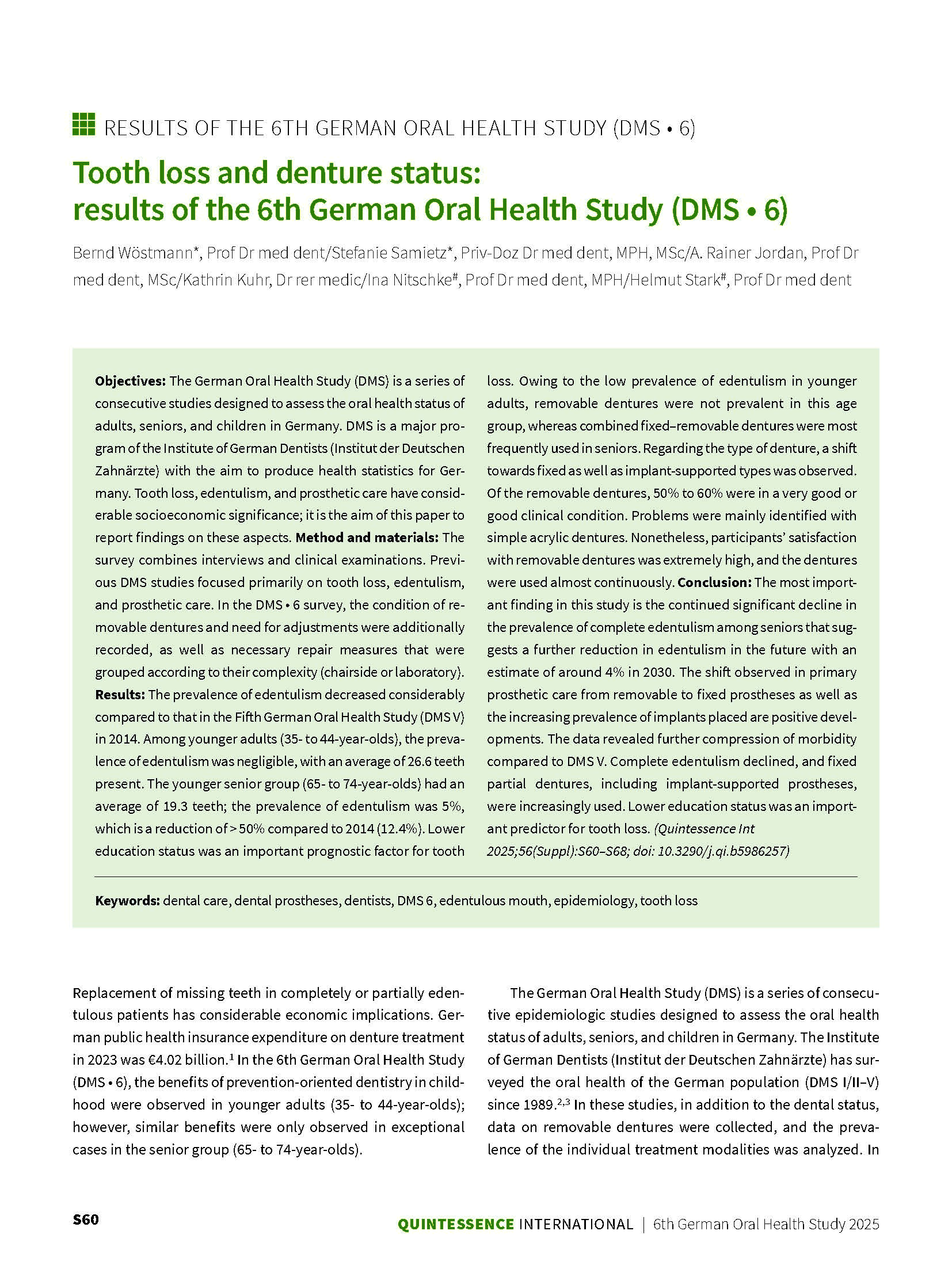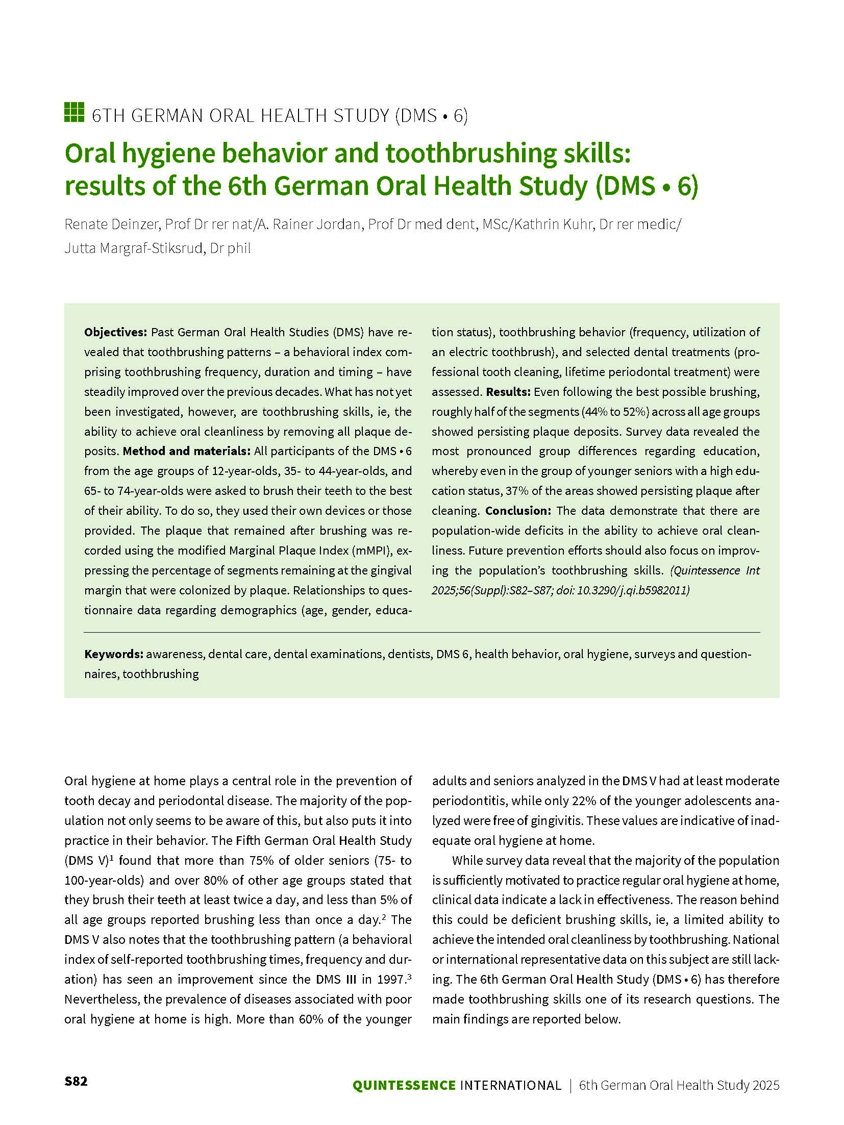 - Überblick über die wichtigsten Ergebnisse der 6. Deutschen Mundgesundheitsstudie (DMS • 6)